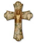 FRATELLI BONELLA イタリア 板絵クロス  FB2363-109 イエスの聖心のヴィンテージ木製十字架  裏無地 24.5×17.5センチ