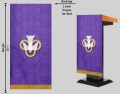 アンボ ハンギングとも呼ばれるレクターン / 説教壇用前布 または別途ハンギング。このハンギングはポリエステル生地で作られています。強度を高めるため、フェルト生地を芯地に使用しています。上部にはロッド用の2インチポケットが付いています。ハンギング台の標準的な高さは32~48インチ(約81~120cm)が望ましいです。上部に抑え棒を入れる2インチ(5センチのポケット)、マジックテープが取り付けられています。ハンキング棒または講壇の縁にマジックテープを取り付けてご利用ください。 講壇布 または ハンキング(記章布として使用) 前面サイズたて91.44センチ×よこ45.72センチ(インチからの計算)