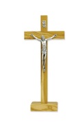 Round Olive wood Cross with Brushed Metal Christ with Base cm.18x8 - BRONZO
