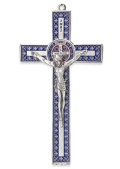 メタルカラーメダイクロス 聖ベネディクト  銀色メダイクロス Ox.Enam.Metal Cross San Ben.Decorated Flowers cm.18,5x10 - BLU PG 339.BLU