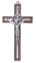 メタルカラーメダイクロス 聖ベネディクト Ox.Enam.Metal Cross San Ben.Decorated Flowers cm.18,5x10 - ROSSO PG 339.RSS
