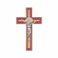 メタルデザインクロス 聖ベネディクト 12×7センチ Enamelled golden metal Cross Flower S.Ben. with box+card cm.12x7,2 - ROSSO