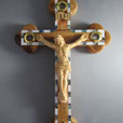 イスラエルから輸入の聖なる十字架です。在庫限り オリーヴの木に木のボティ付 星型の容器が十字架に埋め込まれ、聖なる4種のエルサレム採取ゆかりの品 (オリーヴの葉、ヨルダン川の水、ヨルダン川の土、乳香、没薬、聖油など製品により中に入るものが違います。お選びいただくことができません) 28cm×18センチ十字架の厚み17mmイエスボディ含めると35mm